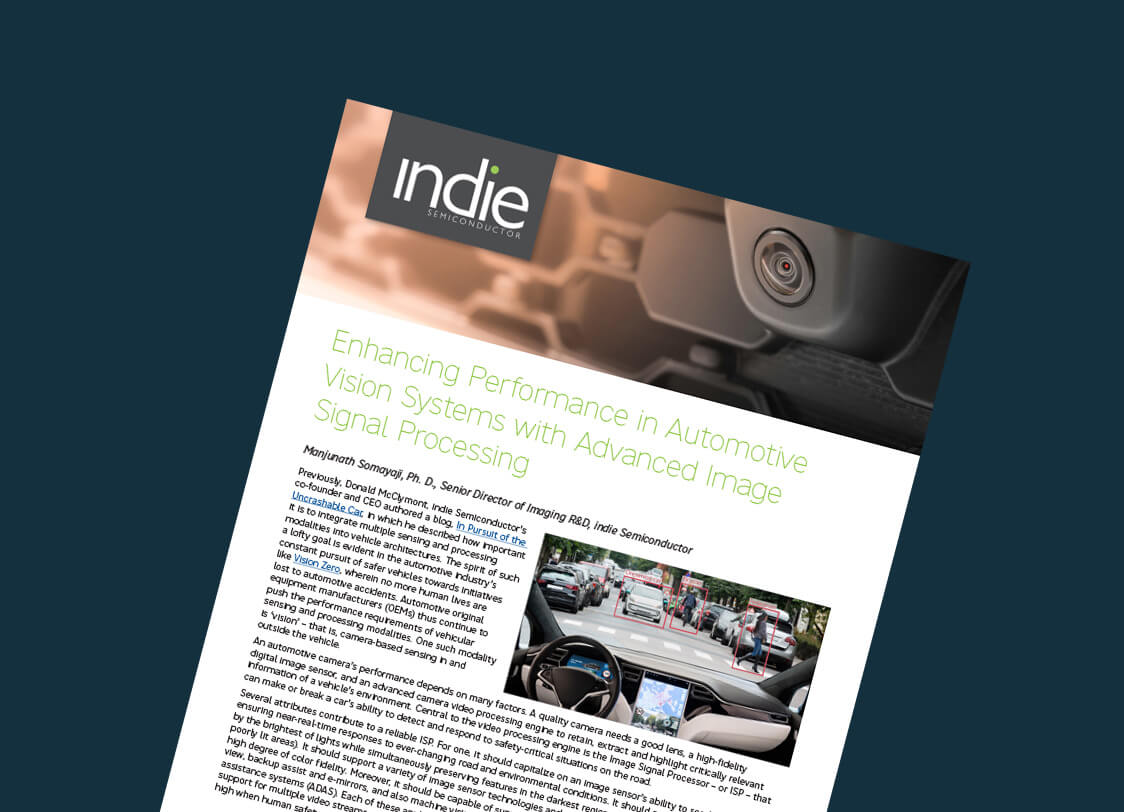 The latest advancements in Image Signal Processor (ISP) technology are engineered to expand high dynamic range imaging, support advanced color filter arrays for accurate color representation and low light performance, and improve the effectiveness of Advanced Driver Assistance Systems (ADAS). These processors are transforming how vehicles “see” and interpret their surroundings. Learn more about indie’s advanced CVPs in our latest whitepaper.