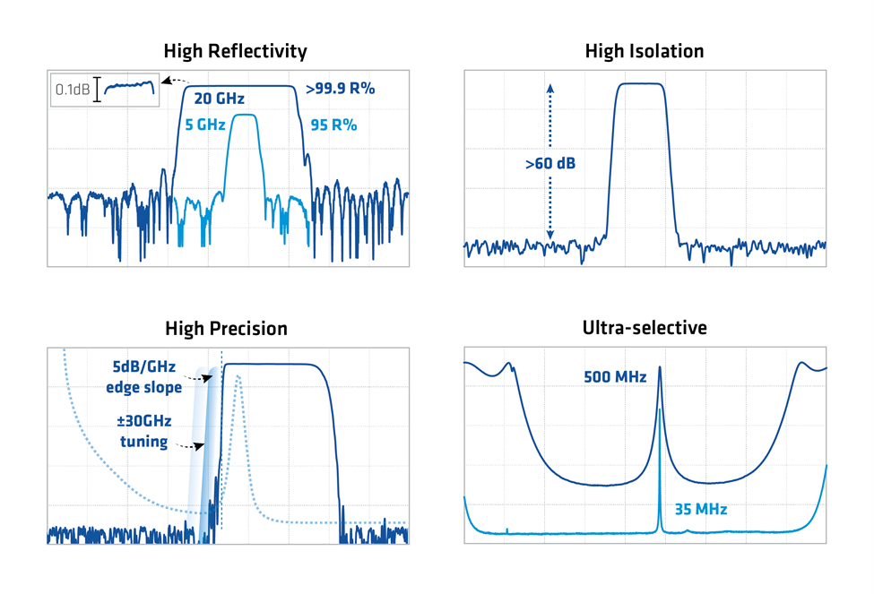 indie’s optical filters rely on Fiber Bragg Grating (FBG) technology, renown for enabling narrow bandwidths and high isolation in a practical and rugged format.