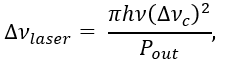 where hv is the photon energy, Δνc is the resonator bandwidth and Pout is the output power1. However, real world lasers are subject to additional noise sources, such as temperature fluctuations, mechanical vibrations, and electronic noise, which broaden the linewidth beyond this